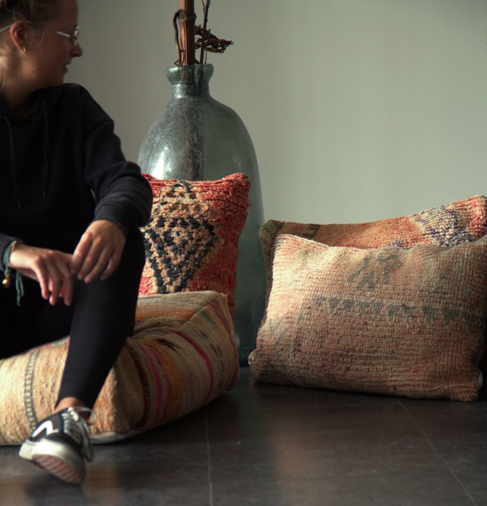 Ontdek onze collectie kussens, tapijten, poefs en accessoires — allemaal met liefde geselecteerd.