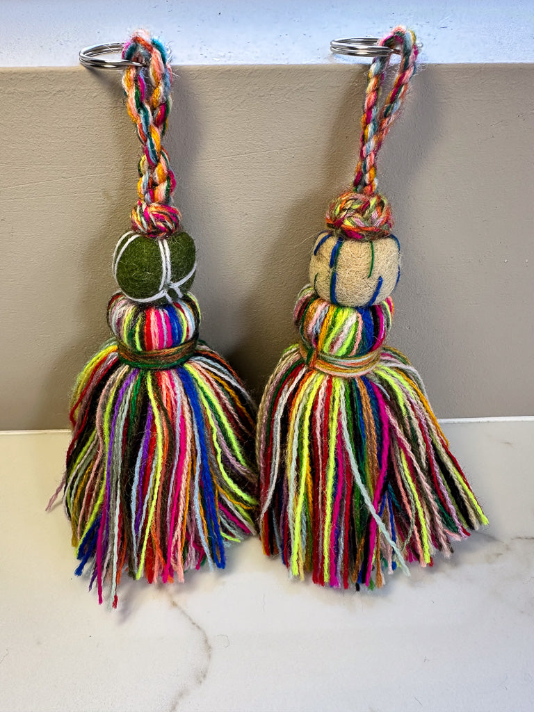 Dit handgemaakte sleutelhanger-ornament is zacht, eenvoudig en perfect in balans. De vele uitbundige kleuren geven die typische Marokkaanse uitstraling.